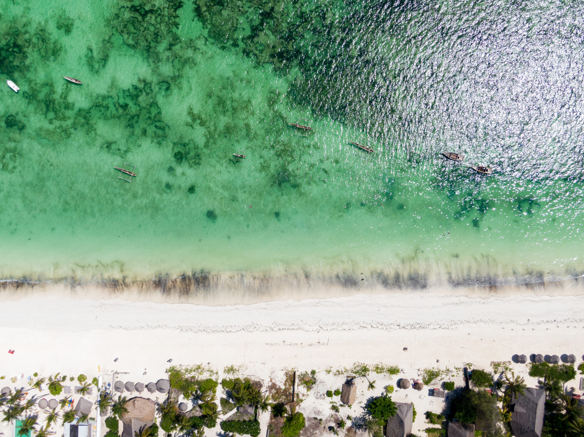 An aerial top view of the blissful Zanzibar region of Tanzania, East Africa